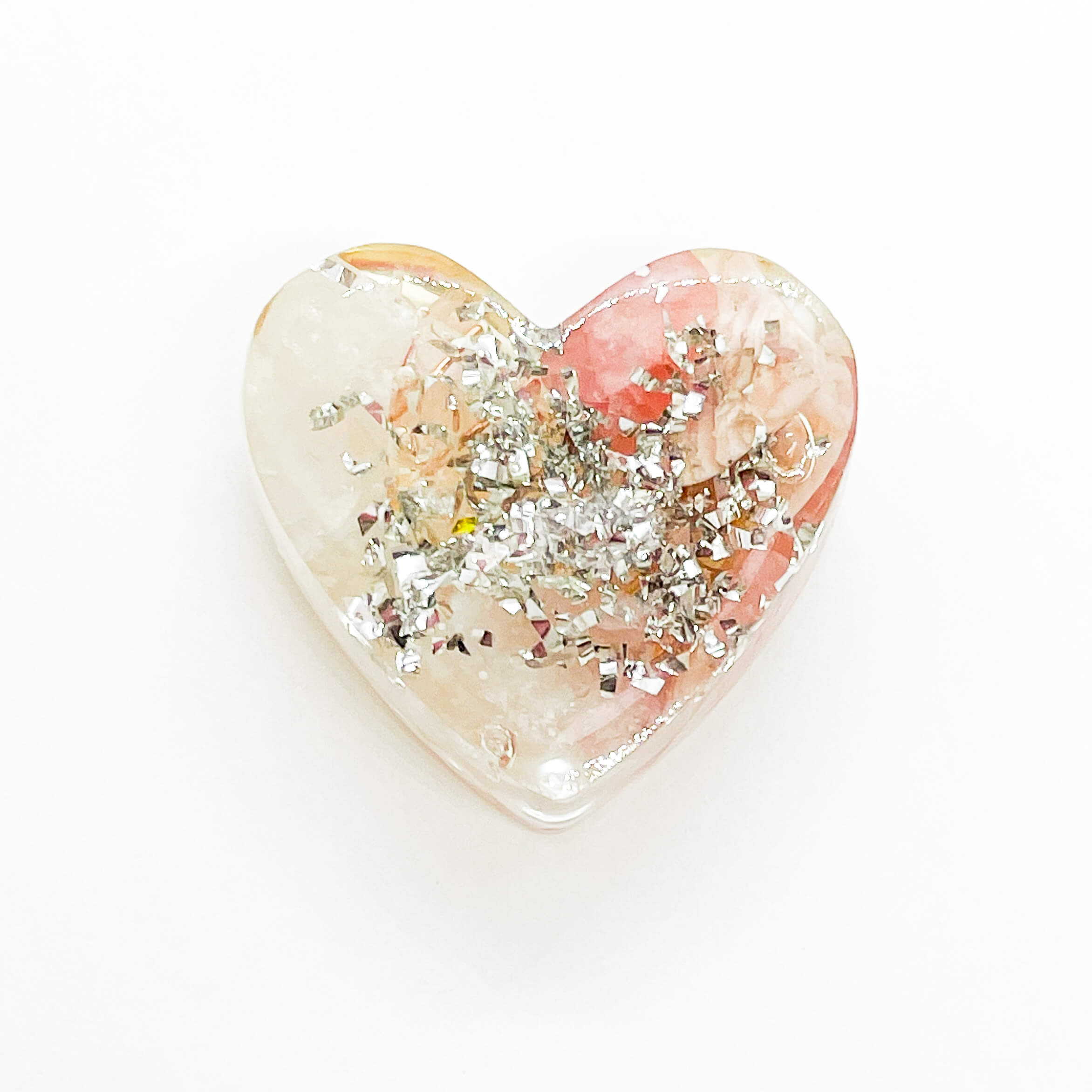 ピンク系のお花とスワロフスキーストーンをあしらった、可愛いミニハートオルゴナイトです。